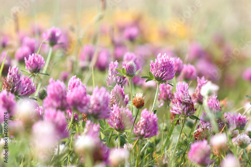 © PhotoIris2021, Naklejka premium Flowering red clover