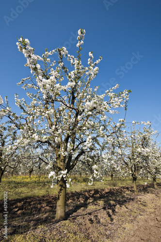 Fototapeta premium Flowering sour cherry orchard tree