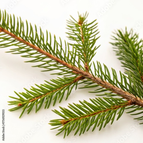 © UN Digital Art, Fototapeta premium Flowers and Leaves in Christmas New year PNG concept. Pine branch with green needles on a light background.