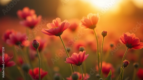 Fototapeta premium flowers bathed in golden hour light
