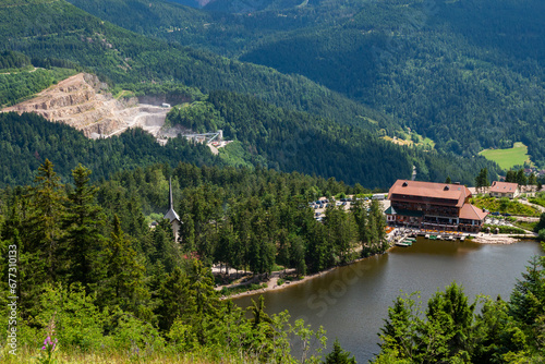 © Mike Workman, Fototapeta premium Flowers blooming at lake in the Black forest Germany during summertime