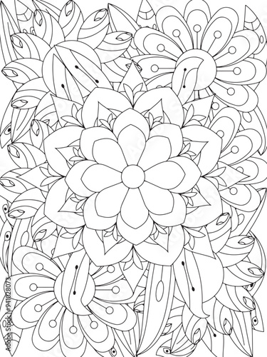 Fototapeta premium Flowers Coloring Book Pages Flowers Patterns