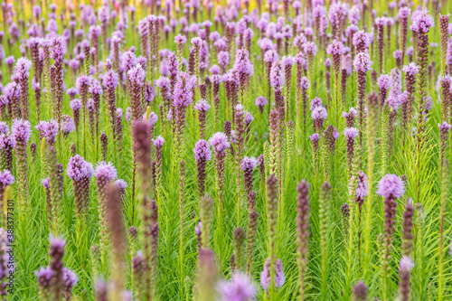Naklejka premium Flowers field of blooming blazing stars or Liatris