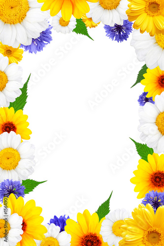 © Rozaliya, Obraz premium Flowers frame with chamomile and cornflower
