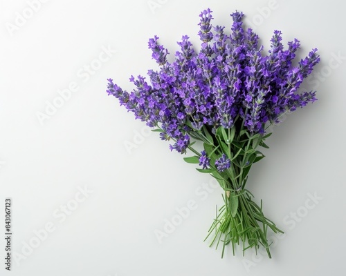 Naklejka premium Flowers From Above. Lavandula Bouquet in Blossoming Purple and Blue on White...