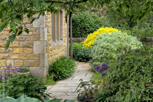 © Yols, Naklejka premium Flowers, herbs and shrubs in a traditional English cottage garden , on a summer day .