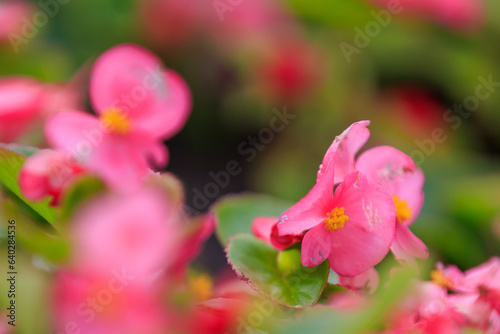 Fototapeta premium Flowers in the bed Begonia. Greening the urban environment. Background with selective focus