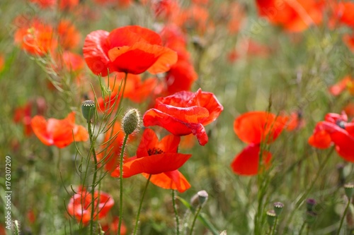 © ChrWeiss, Obraz premium Flowers of common poppy in a field.