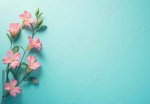 © muhammadarslan, Naklejka premium Flowers on Turquoise Background with Copy Space