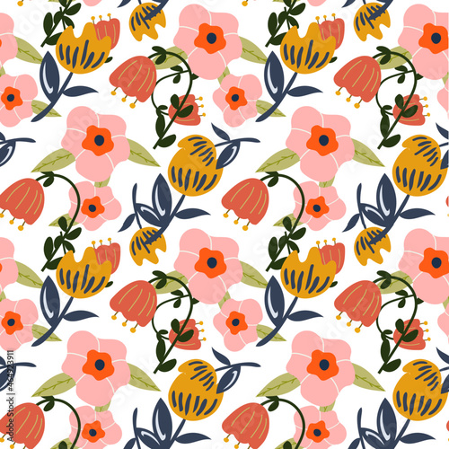 © Smallroombigdream, Fototapeta premium flowers pattern geometric art fashion minimal