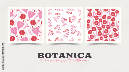 Fototapeta premium Flowers seamless pattern collection. Pink color. Modern trendy Matisse...