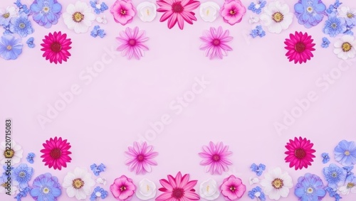 © Anngozza, Fototapeta premium Flowers wall background. Spring floral on light pastel pink background 2