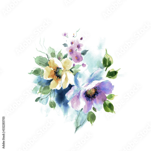 © TAOZHU GONG, Fototapeta premium Flowers watercolor illustration.Manual composition.Big Set watercolor elements,Design for textile, wallpapers,Element for design,Greeting card