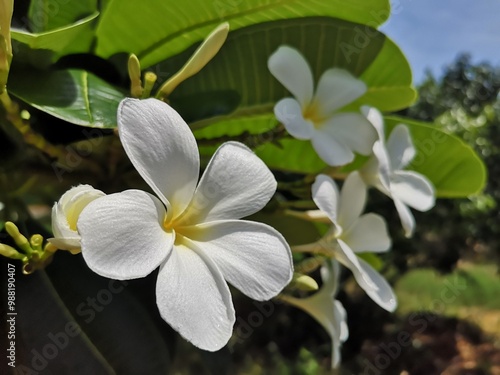 Fototapeta premium Flowers, White Flower, Apocynaceae, Plumeria, Frangipani, Plumeria, Temple Tree, Graveyard Tree.