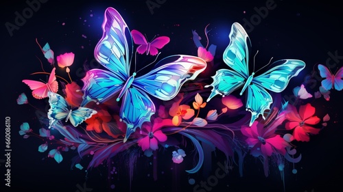 Obraz premium Flowers with butterflies design neon illustration beautiful image Ai...