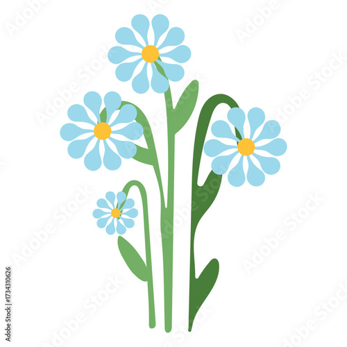 © Anhelina, Naklejka premium flowers with green stems flat cartoon style