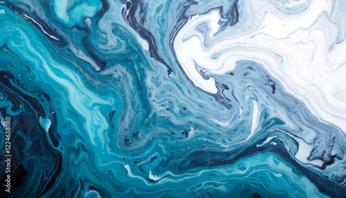 © Tunvola, Obraz premium Flowing Abstract Art Pattern with Blue and White Marble Texture