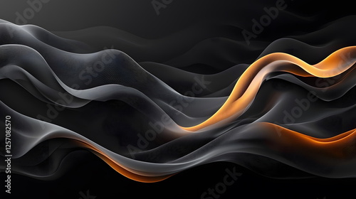 © Khomkit, Obraz premium Flowing abstract lines in black and orange creating a dynamic wave-like design against a dark background