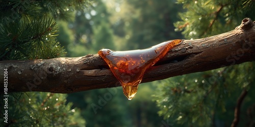 © AkuAku, Obraz premium Flowing amber resin from a felled branch, highlighting plant secretion processes for scientific study