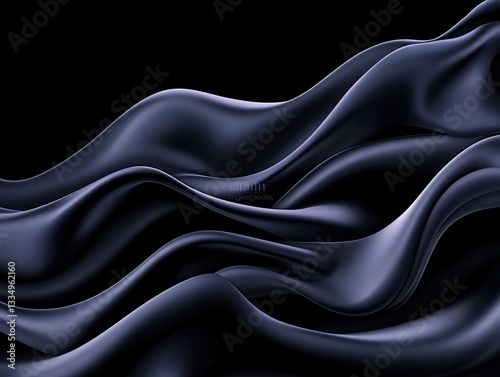 © darion, Obraz premium Flowing black fabric waves creating a smooth, elegant texture on a dark background