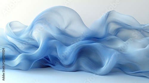 Fototapeta premium Flowing blue fabric draped elegantly, creating soft waves against a...