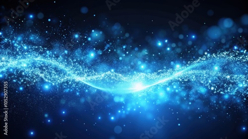 Obraz premium Flowing blue particles of light, blue, particles, light, abstract,...