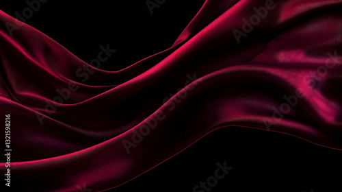 © ahmad, Obraz premium Flowing Burgundy Fabric With Intricate Textures On Black Background 3D Render Digital Art