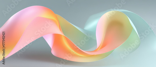 © Pachara, Fototapeta premium Flowing, colorful abstract ribbon with soft pastel hues of pink, orange, and blue creates sense of movement and elegance against neutral background