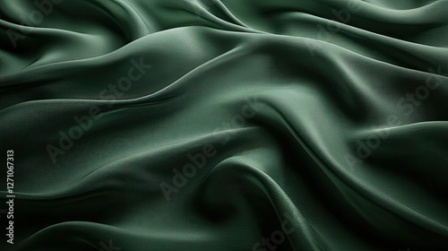 Fototapeta premium Flowing deep emerald green fabric waves with soft shadows and light...