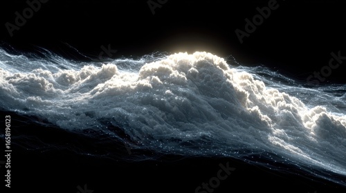 © mas, Fototapeta premium Flowing, ethereal cloud of particles illuminated against a dark, contrasting background
