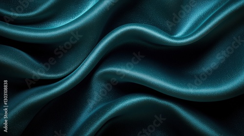 Fototapeta premium Flowing fabric in deep teal color with soft texture and gentle folds illuminated by ambient light