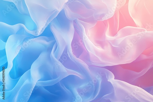 Fototapeta premium Flowing fabric in soft blue and pink hues creates an abstract design, showcasing gentle movement and texture