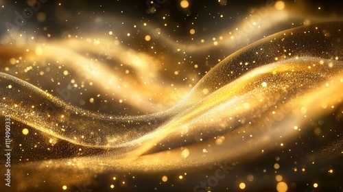 Obraz premium Flowing golden waves with glittering particles, adding texture and depth to a...