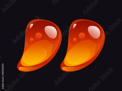 © Vector Tradition, Naklejka premium Flowing honey cartoon font punctuation quotation mark. Yellow candy ABC typeset sign, sweet honey vector English font punctuation mark. Tasty caramel typeface or English alphabet type symbol
