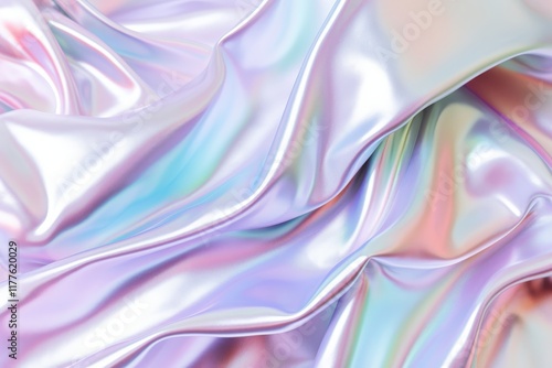 Obraz premium Flowing iridescent silk fabric close-up studio textile texture soft light...