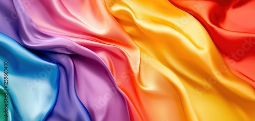 Obraz premium Flowing multicolored satin fabric, smooth gradient of rainbow hues, soft...
