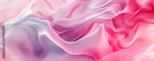 Obraz premium Flowing of pink and white waves on white background, fluidity. AI generation