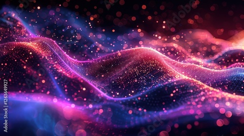 © Niphaphan, Fototapeta premium Flowing particle wave, abstract tech design, hi-tech big data background for business cards, banners, and brochures