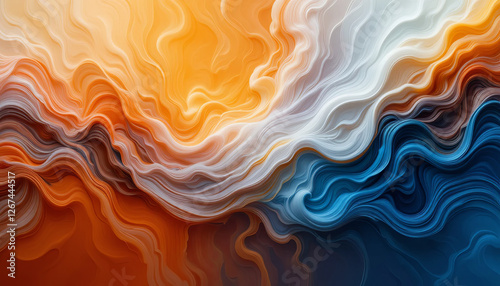 Fototapeta premium Flowing patterns of vibrant orange, blue, and white create a dynamic abstract...