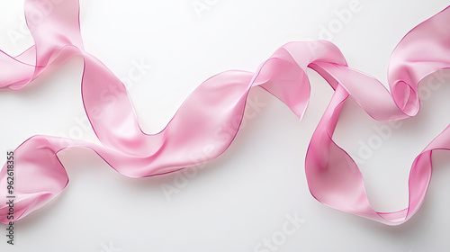 © Kantiztiae, Fototapeta premium Flowing pink ribbon on white background