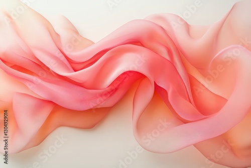© Antonia, Fototapeta premium Flowing pink silk scarf drapes gracefully on a light surface