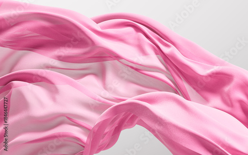 © Vink Fan, Obraz premium Flowing pink wave cloth background, 3d rendering.