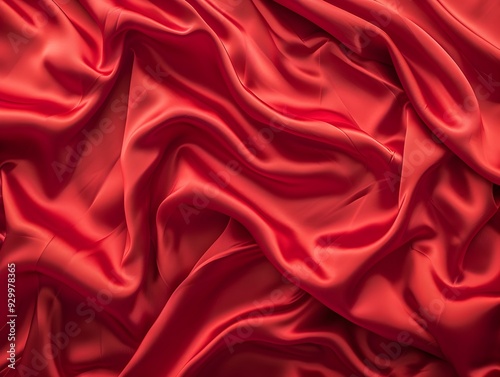 Obraz premium Flowing red satin fabric with soft curves and rich texture captured in...