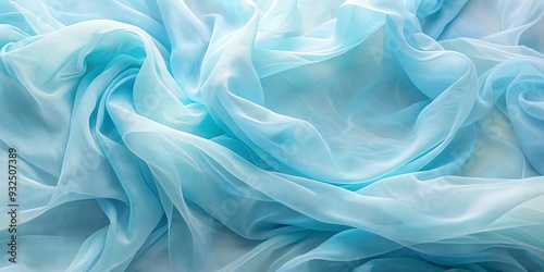 Obraz premium Flowing sheer pastel fabric in soft blue tones creating dreamy abstract background with copy space, pastel, fabric