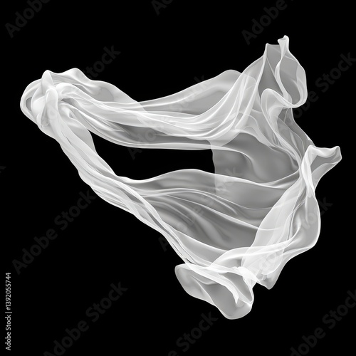 Fototapeta premium Flowing Sheer White Fabric Drapery on Black Background for Design