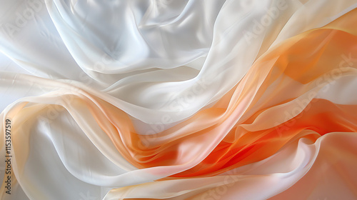 © hsn, Obraz premium Flowing silk fabric in gradient shades of white and orange creating a soft and elegant visual design
