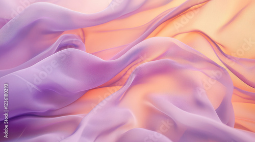 Fototapeta premium Flowing silk fabric in soft lavender and peach tones with gentle folds