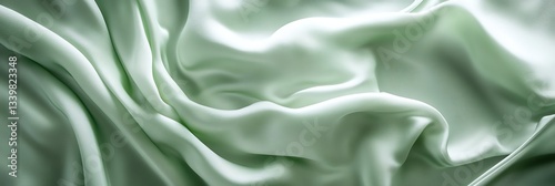 © rajagambar99, Obraz premium Flowing Soft Green Fabric Creates Elegant Abstract Design Background Banner