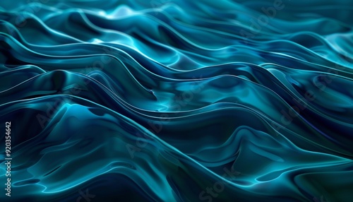 Obraz premium Flowing Teal and Dark Blue Abstract Waves, Digital Art Background with Smooth...