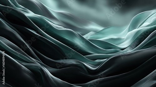 © Rena, Obraz premium Flowing teal and dark teal fabric drapes.